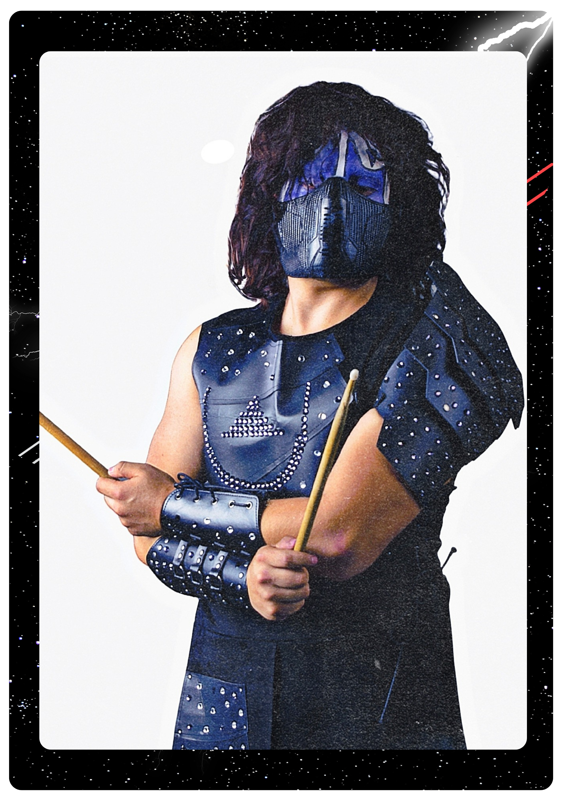Silent but enigmatic, Cosmos lets his music speak for him. His basslines are the undercurrent of ARMAGELION’s power, steady and unyielding, driving the rhythm of both battle and celebration. In the chaos of war or the grandeur of their celestial concerts, his playing grounds the energy, giving it purpose and direction. Eddie Slaughter is the quiet force among the Acolytes, yet his presence is undeniable. His mastery of sound's deepest frequencies makes him the stabilizing force in the ensemble, ensuring that their cosmic power resonates cross dimensions, uniting the universe with the soul-shaking groove of rock n' roll.